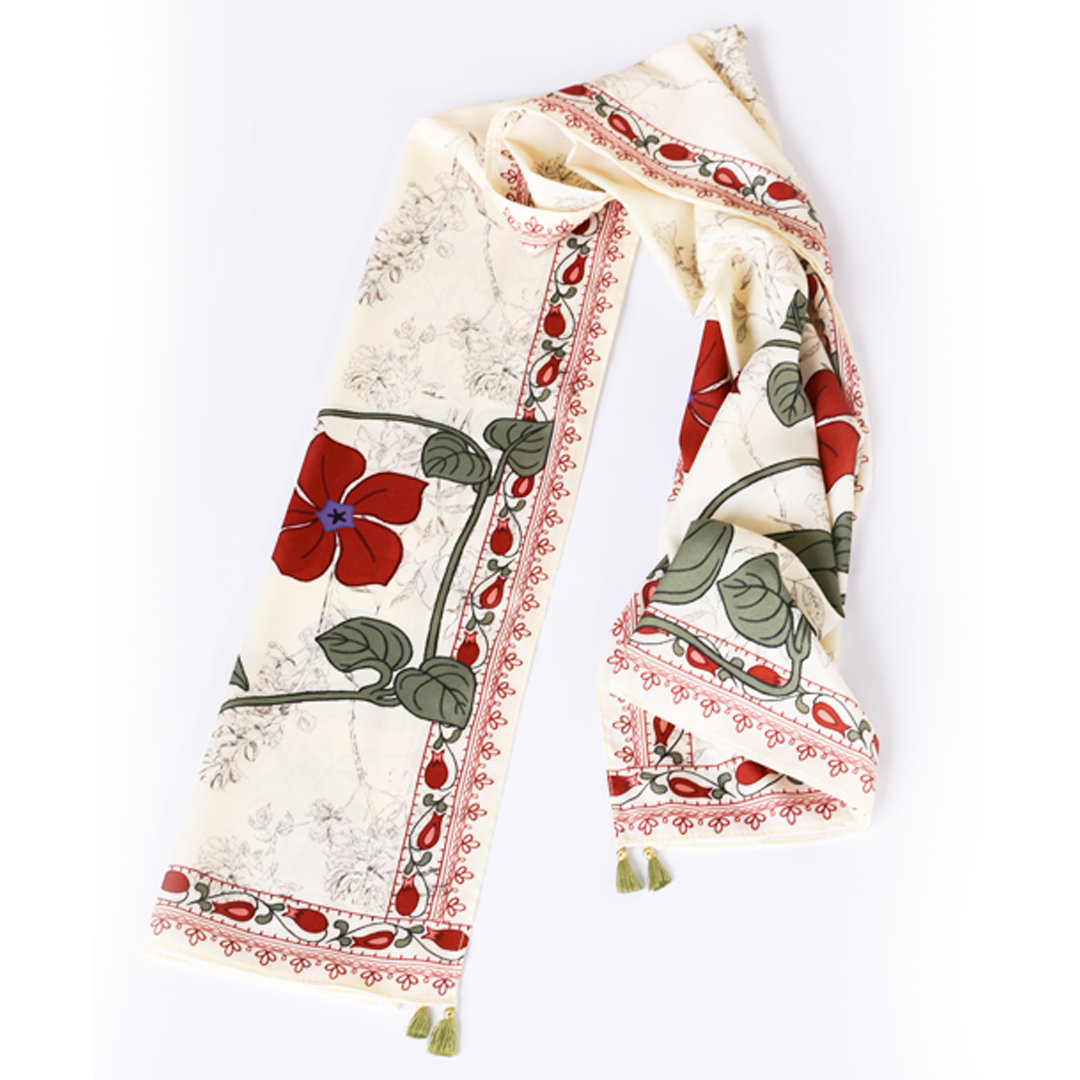 This silk scarf features a digital print inspired by elements of nature, with a clean edge finish. Perfect for both warm and cool weather, it offers fluid drapeability for effortless wear.
